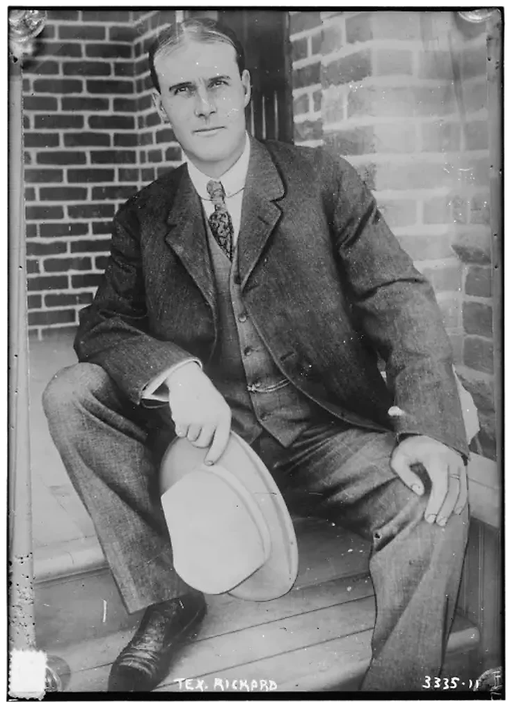 Деятельность Рикарда охватывала золотодобычу, игорный бизнес, скотоводство, организацию крупнейших боксерских боев и прочих спортивных и развлекательных мероприятий, создание спортивной инфраструктуры... Может, конечно, с «золотодобычей» я и приукрасил - так, обычный среднестатистический старатель - заложник «золотой лихорадки», который, возможно, и преуспел чуть больше остальных. Именно Рикард превратил бокс в массовое зрелище, не без оснований претендуя на звание первого в истории промоутера боксёрских поединков. Первым организовав «миллионные гейты» (бои с выручкой свыше 1 млн. долларов), он заложил основы современного спортивного маркетинга. Его жизнь - это история авантюриста, чьи амбиции и чутье к шоу-бизнесу сделали его легендой. Геолокация его деятельности простирается от Аляски до Парагвая, проходя через Неваду, Техас, Флориду и ставя восклицательный знак в Нью-Йорке. Из-за него (косвенно) вспыхнул вооружённый конфликт между Парагваем и Боливией, через несколько лет переросший в полномасштабную войну (Чакская война). Он сопровождал президента США Теодора Рузвельта в его путешествии по Южной Америке в 1913 году, и Рузвельт в своих мемуарах вспоминает о нём так - «…мой друг с Дикого Запада «Текс» Рикард...» И ещё - если вы заинтересуетесь биографией этого человека, то можете встретить информацию о том, что Рикард служил в корпусе техасских рейнджеров - и это, как вы догадываетесь, будет иметь связь с последующими событиями. Но вот этому не верьте. Данная информация, судя по всему, пиар-акция от самого «Текса». Рейнджером он не был. Но был маршалом или, как эта должность чаще звучит в голливудских вестернах - шерифом. Шерифом городка Генриетта в Техасе. Что, согласитесь, тоже весьма и весьма почётно в прериях Дикого Запада, не менее круто чем рейнджер, но всё-таки несколько иное. Маршалом он был избран в 23 года, прослужил в этой должности 2 года. Вот тогда-то, кстати, он и приобрёл прозвище «Текс». Деятельность Джорджа Рикарда - это рассказ о стремительных взлётах и столь же стремительных падениях. Например, спасаясь в 1915 году от вооружённого конфликта на границе Боливии и Парагвая (который, как я сказал выше, случился в какой-то степени из-за его дерзких действий), он потерял состояние в размере примерно в 1 миллион долларов. Я далёк от финансовых инструментов, чтобы сравнивать - сколько это было бы сейчас, но предлагаю оценить ущерб таким мерилом - в 1925 году команда Лиги стоила 100 тысяч баксов (мы ещё коснёмся этой темы), вот и считайте. Однако, вернувшись в Штаты, «Техас» очень быстро компенсировал потери, организовав несколько «титульных» боксёрских поединков.