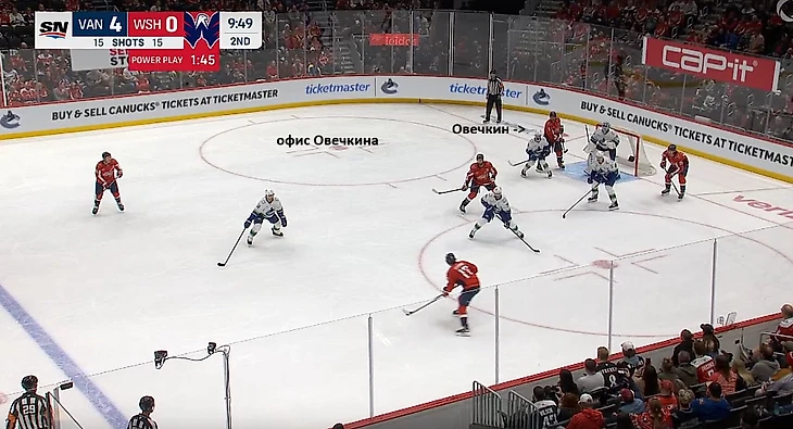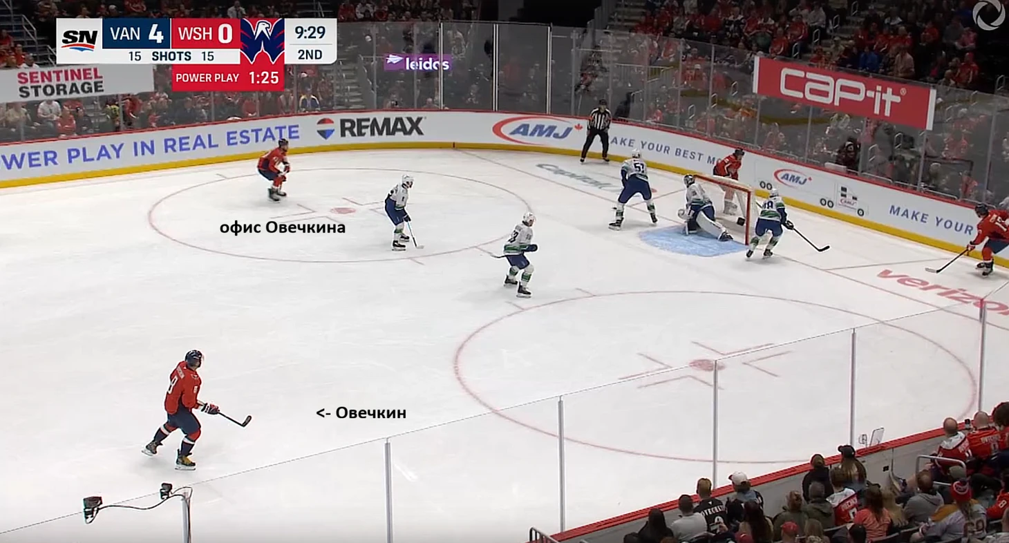 Офис Овечкина практически на постоянной основе перекочевал из левого круга на пятак. После вбрасывания в зоне атаки он мчится туда и расталкивает соперников огромным, 108-килограммовым опытом как кегли в боулинге, перекрывая обзор вратарю.
