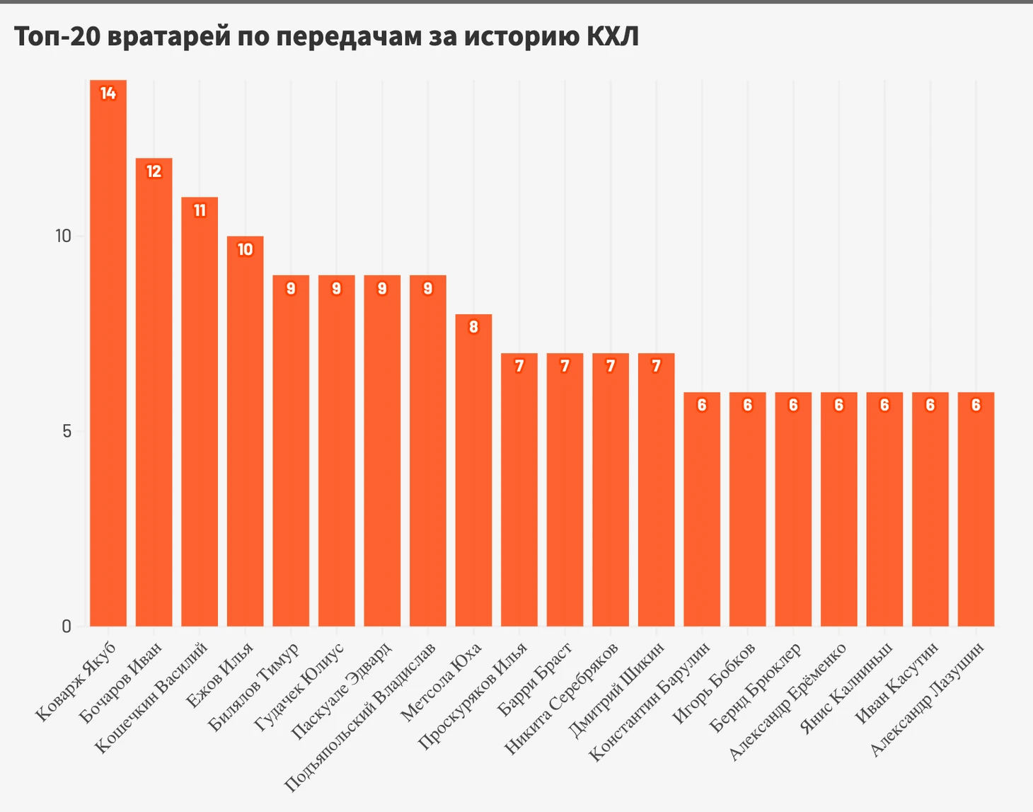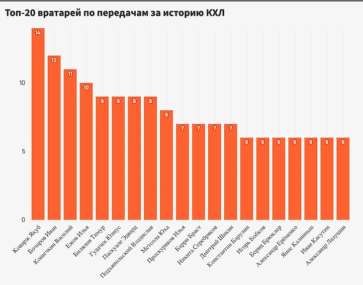 Вратари-бомбардиры. Кто отдал больше всех передач в КХЛ?