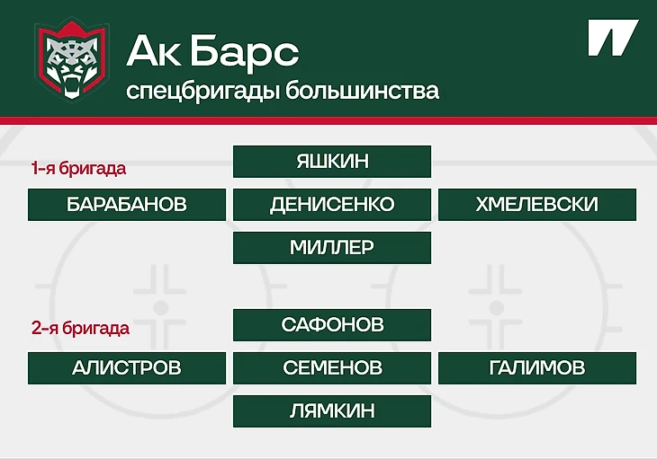 Первая пятерка большинства «Ак Барса» сейчас выглядит так: Миллер – Барабанов (слева) – Денисенко – Хмелевски (справа) – Яшкин (пятак). Это приносит результат: во время победной серии казанцы реализовали численное преимущество десять раз. Особенно удачным получился матч с «Адмиралом» (5:3) 25 октября. Тогда «Ак Барс» забросил три шайбы в формате 5-на-4, при этом отличились обе спецбригады.