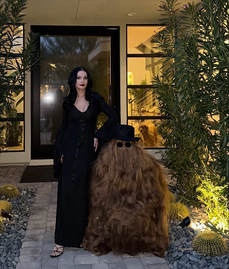 Иван Барбашев и его супруга Ксения на одну ночь стали членами семейки Адамс – Мортишей и кузеном Иттом. Ивана в таком образе узнать тяжело.