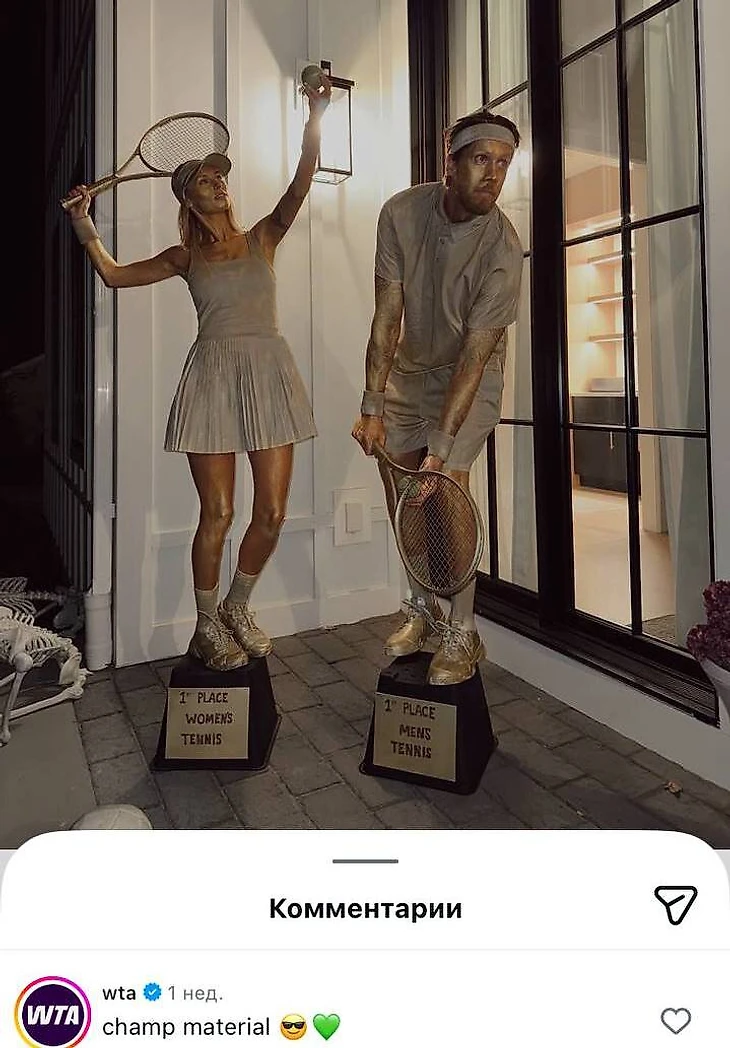 Вратарь «Нью Джерси» Якоб Маркстрем придумал парный образ с супругой: сменил сферу интересов, взяв в руки теннисную ракетку вместо клюшки. Но стал не теннисистом, а статуэткой за победу в турнире. Образы очень понравились официальному аккаунту WTA.