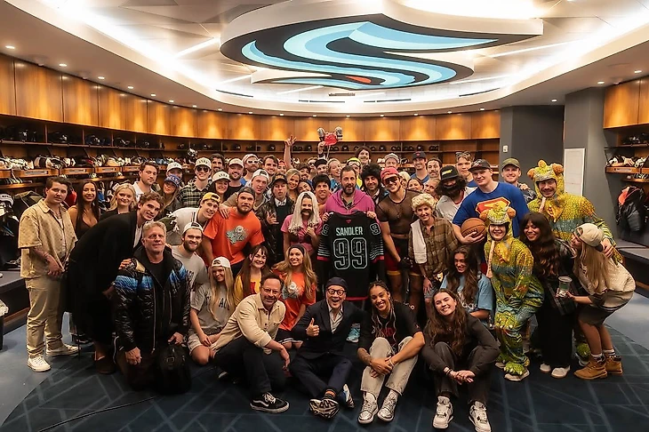 Вечеринка «Сиэтла» прошла со специально приглашенным гостем. На Climate Pledge Arena в рамках своего тура выступал комик Адам Сэндлер, и после концерта он зашел в раздевалку – а там игроки, нарядившиеся в костюмы героев из его фильмов. Например: Мэттью Бенирс и Джои Даккор стали героями ленты «Не шутите с Зоханом», а Джош Махура, Беркли Каттон и Тай Карьте – персонажи «Билли Мэдисона».