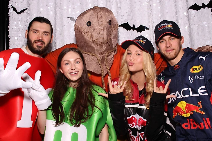 Егор Чинахов тоже решил переквалифицироваться: из хоккеиста он превратился в гонщика Ф1 – кажется, в четырехкратного чемпиона мира Макса Ферстаппена из «Ред Булла». Кирилл Марченко с женой переоделись в конфеты M&M’s, а Дмитрий Воронков - Сэм из фильма «Кошелек или жизнь».