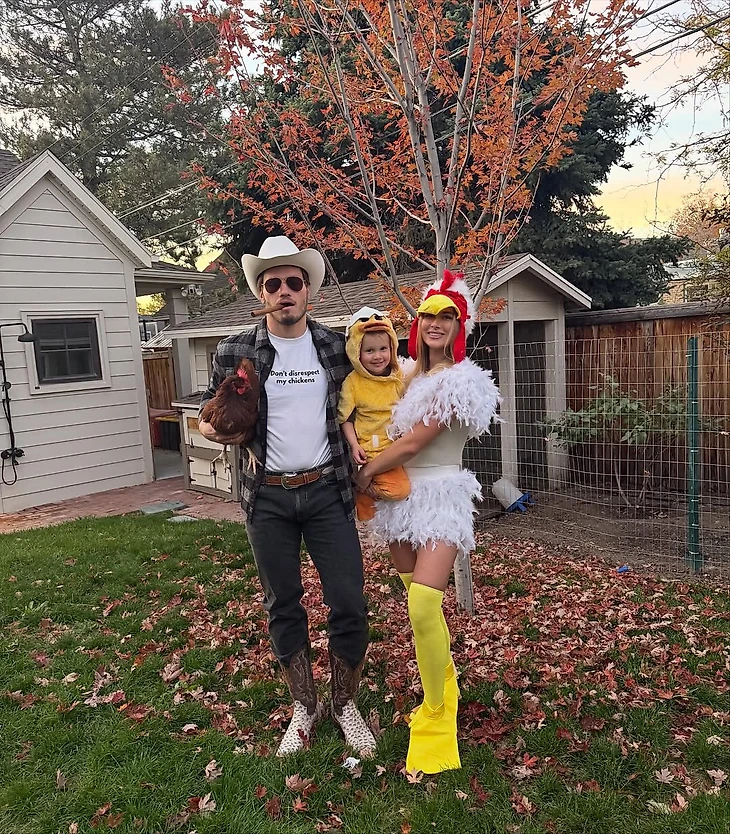 Такой фэмили-лук составили Михаил и Елизавета Сергачевы. На футболке ковбоя из «Юты» красуется многозначительная надпись – «Не обижай моих курочек».