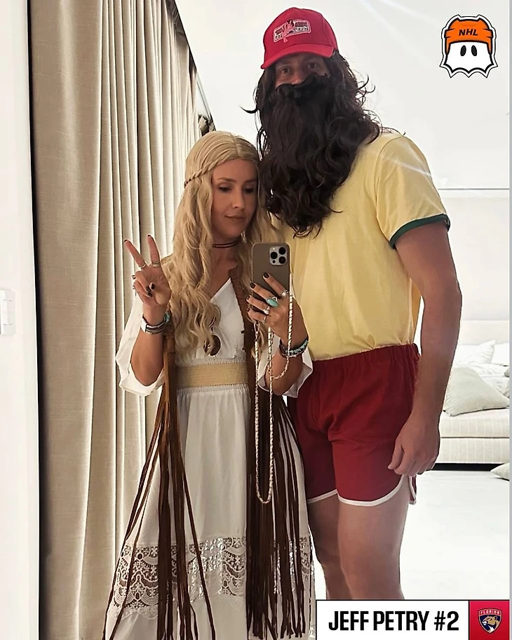Джефф Петри из «Флориды» и его супруга выбрали парный костюм в тематике «Форреста Гампа». В образе героя из этого фильма борода защитника стала еще длиннее.