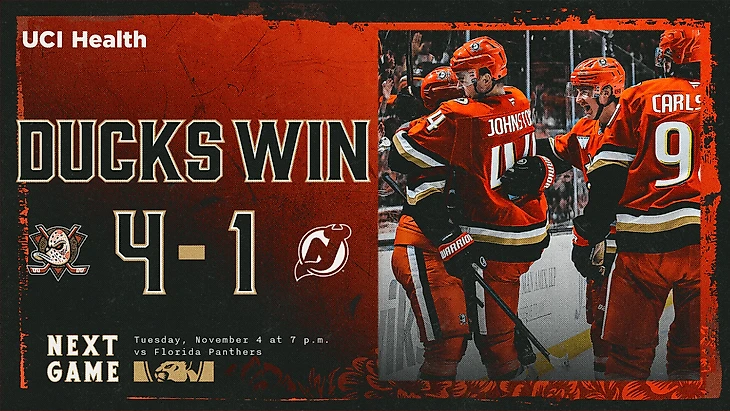 «Анахайм Дакс»-»Нью-Джерси Дэвилз» 4:1. Бекетт Сеннеке и Коул Готье набрали по 2 очка (1+1), Павел Минтюков отдал результативную передачу, Лукаш Достал отразил 32 броска. «Утки» выиграли 3 игру подряд.