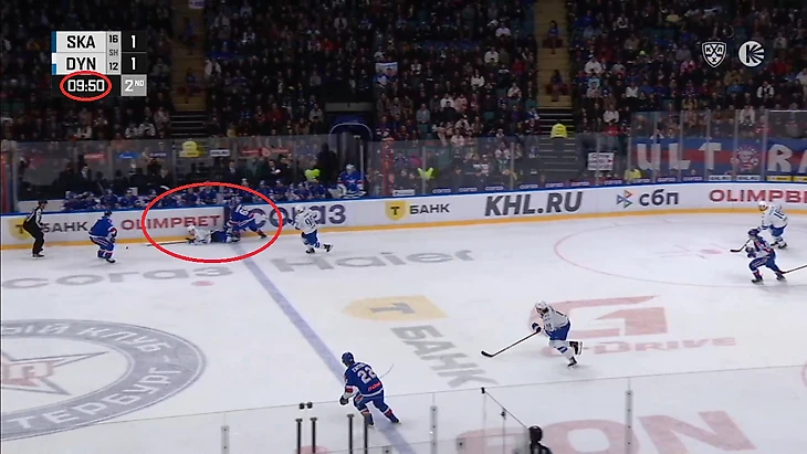 Травма Романова произошла только на отметке 9:45. Следом раздался и свисток судьи. Хотя остановка предполагалась раньше – эти пять секунд именно игроки СКА владели шайбой.