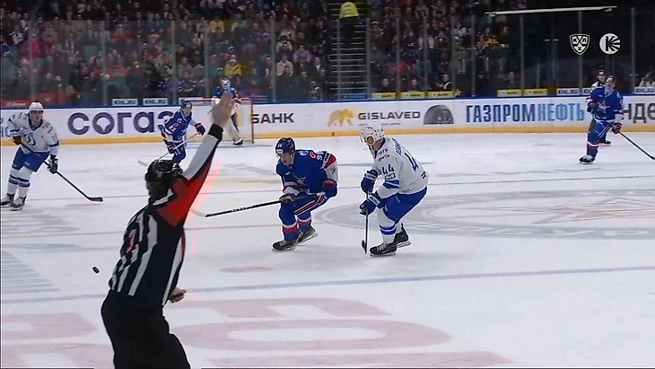 При этом нарушение Ларионова-младшего арбитр зафиксировал сразу и поднял руку еще до столкновения Романова с бортом. Подтверждение этого есть на повторе с другого ракурса.