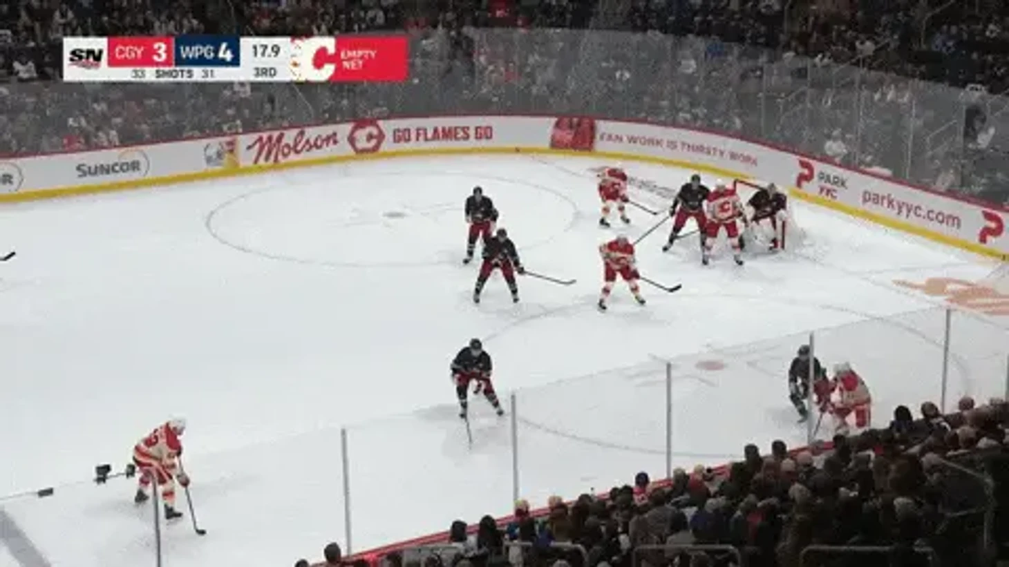 Игра с «Виннипегом», где у «Калгари» были реальные шансы зацепиться за овертайм. При пустых воротах шайба очень удачно отскакивает к Шаранговичу. Вратарь соперника немного потерян, Егор полностью открыт. Счет мог и должен был стать 4:4, но стал 5:3, что подытожило игру. Добавить больше нечего.