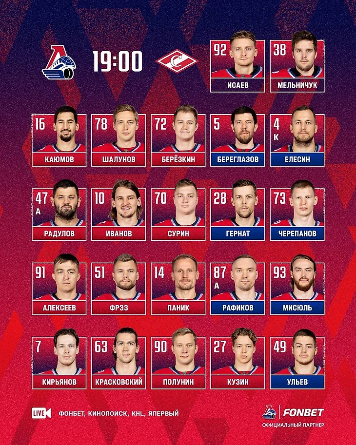 сегодня, 15:12 1 мин. Состав спартаковцев на сегодняшнюю игруКоля СтрогоновАвтор59 подписатьсяЗагидулин в воротах, Ярош и Ружичка сегодня в составе. Состав наших соперников: Спартак