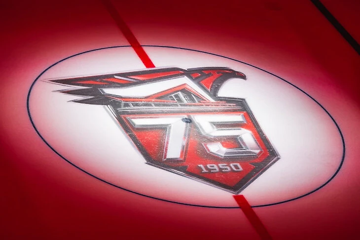 Юбилейный логотип уже расположился на льду «G-Drive Арены» в центральном круге вбрасывания. Впервые болельщики увидели его еще перед матчем с «Нефтехимиком» (2:1).