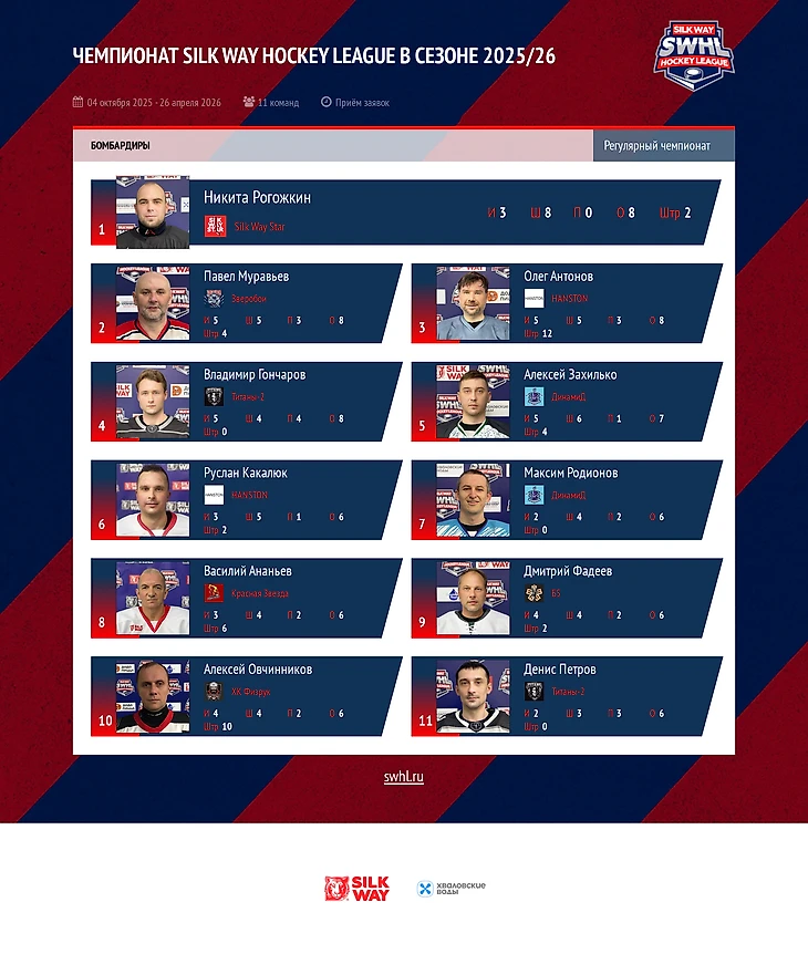 ТОП-11 БОМБАРДИРОВ SWHL ПОСЛЕ ПЯТОГО ТУРА