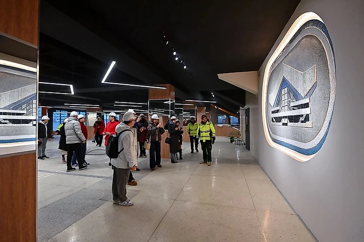 Кстати, будущие хозяева СКК смогут провести там первую тренировку уже в декабре. Планируется, что до конца сезона «Крылья» уже полноценно переедут на стадион. Спортивный блок здания сейчас активно реконструируется, так что пока посмотреть на раздевалки, зоны разминки, отдыха спортсменов, тренажёрный зал не удалось, зато получилось проникнуть внутрь чаши. Работы там не прекращаются ни на секунду, во время захода журналистов пришлось даже попросить строителей прерваться, чтобы было хотя бы не так шумно.