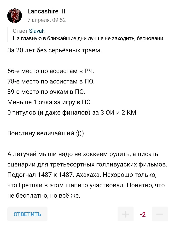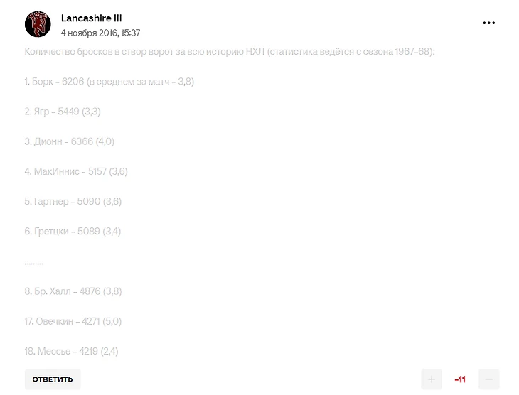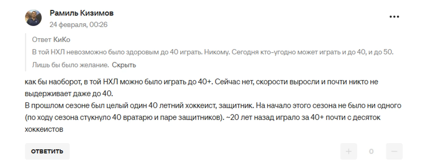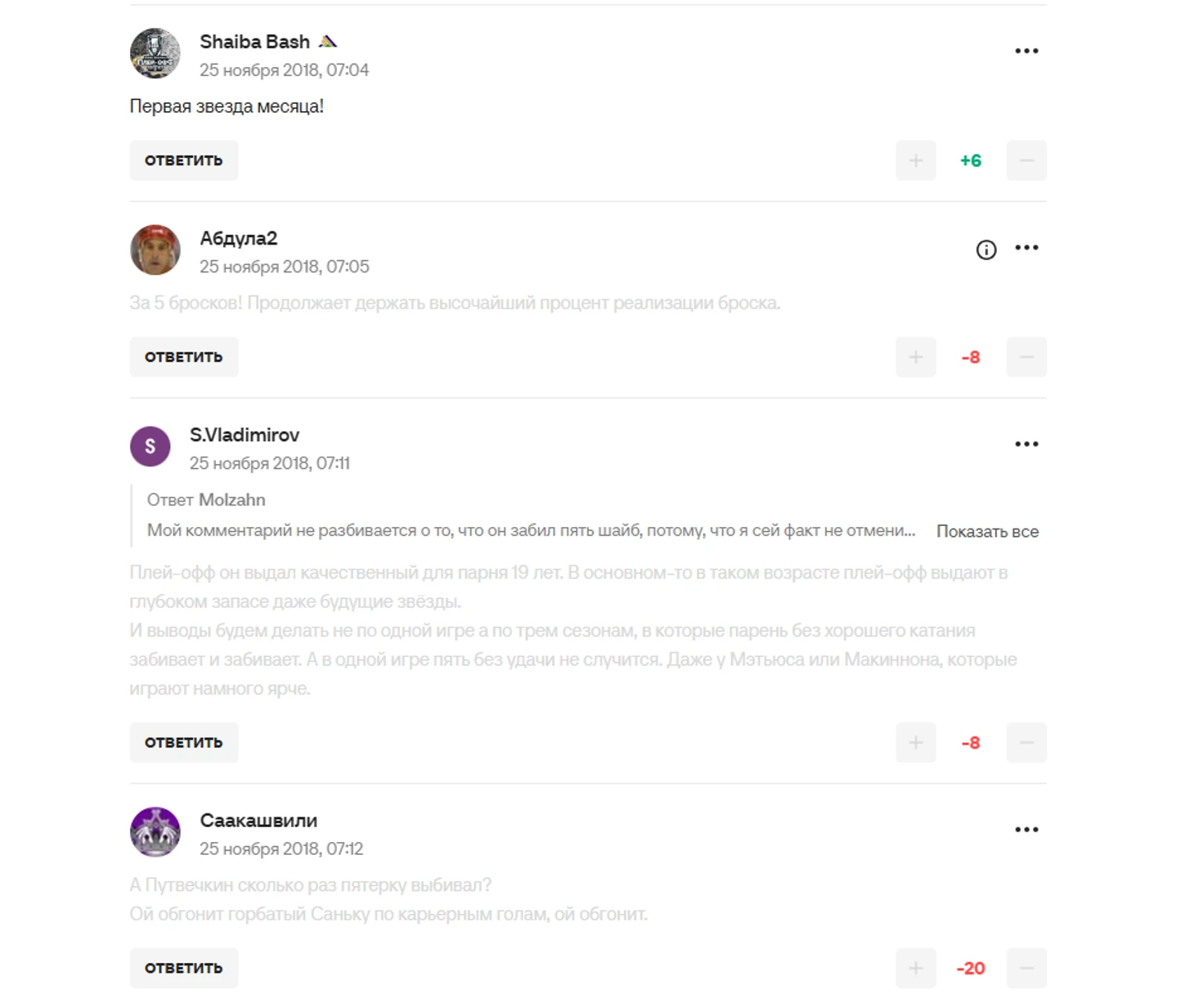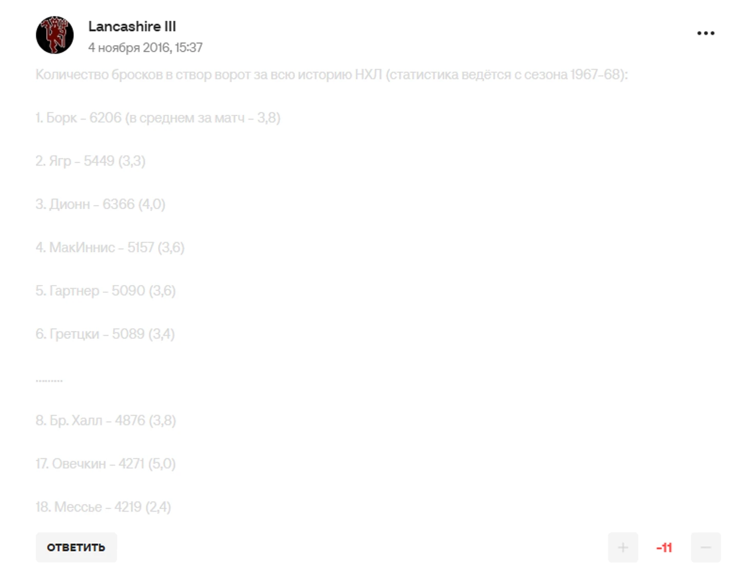 Буквально, когда писал этот текст, наткнулся на очередное одного из пустословов в комментариях к статье «Эти русские набрали 1000 очков в НХЛ»: