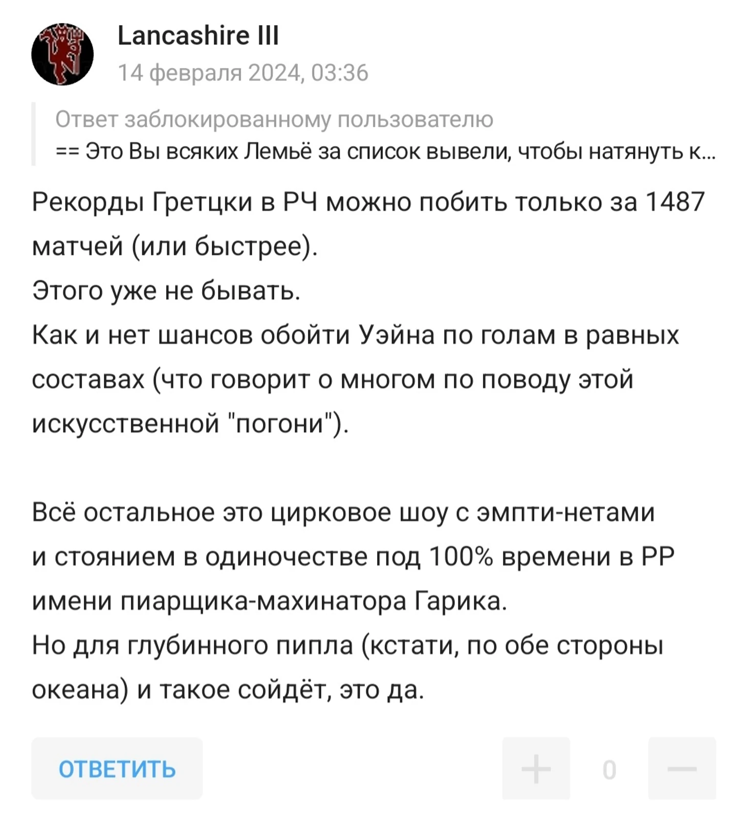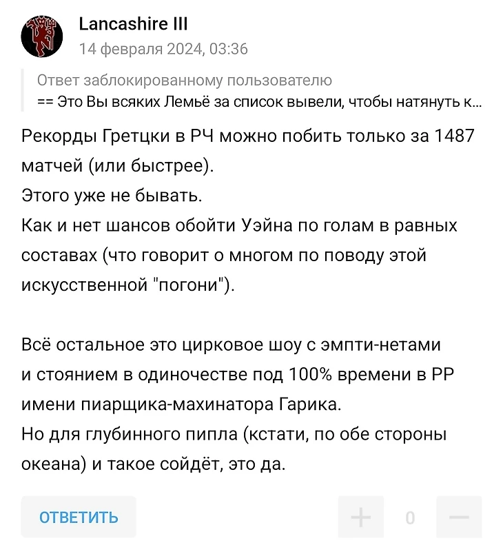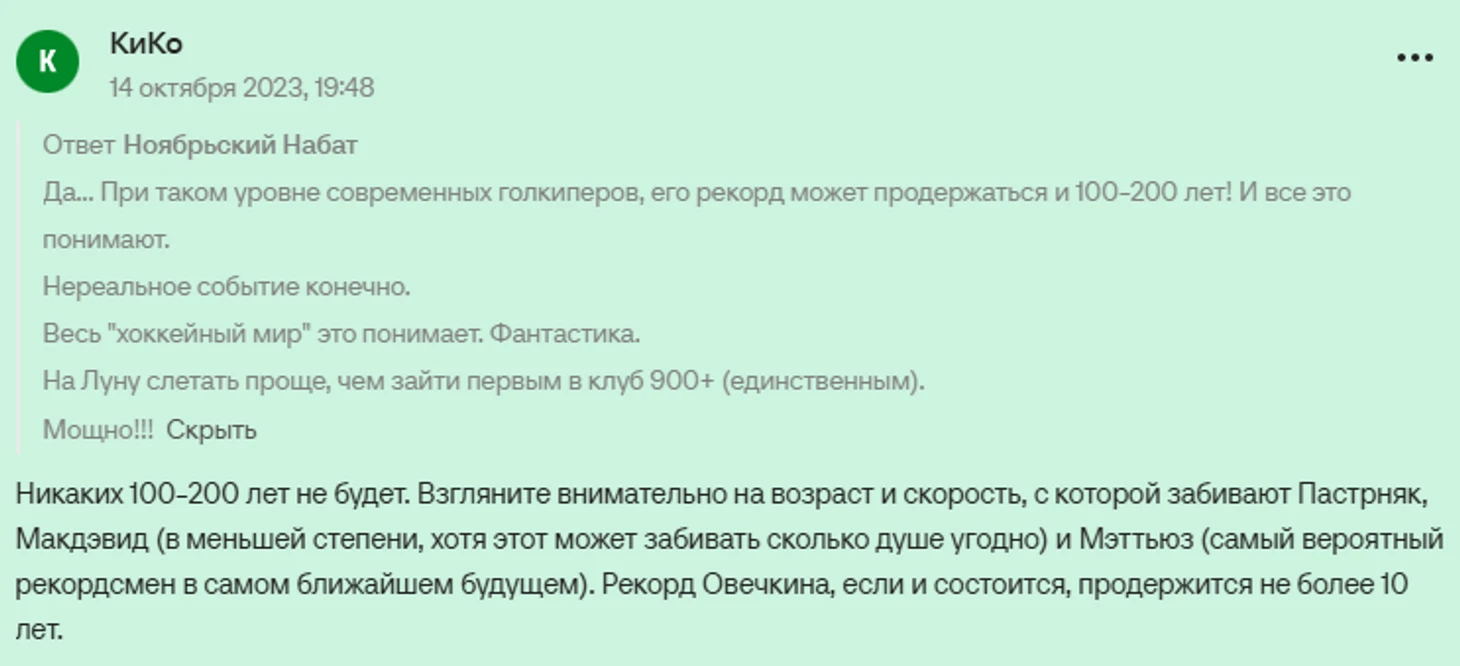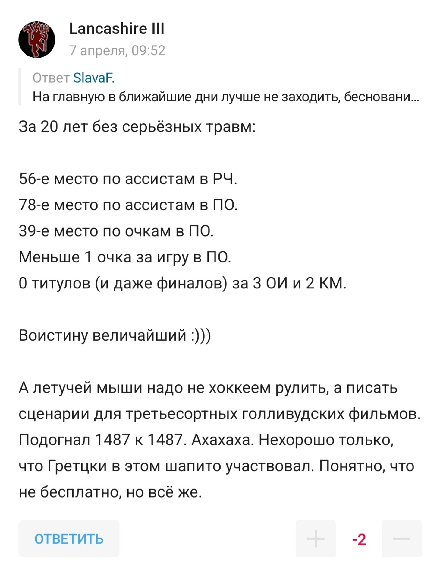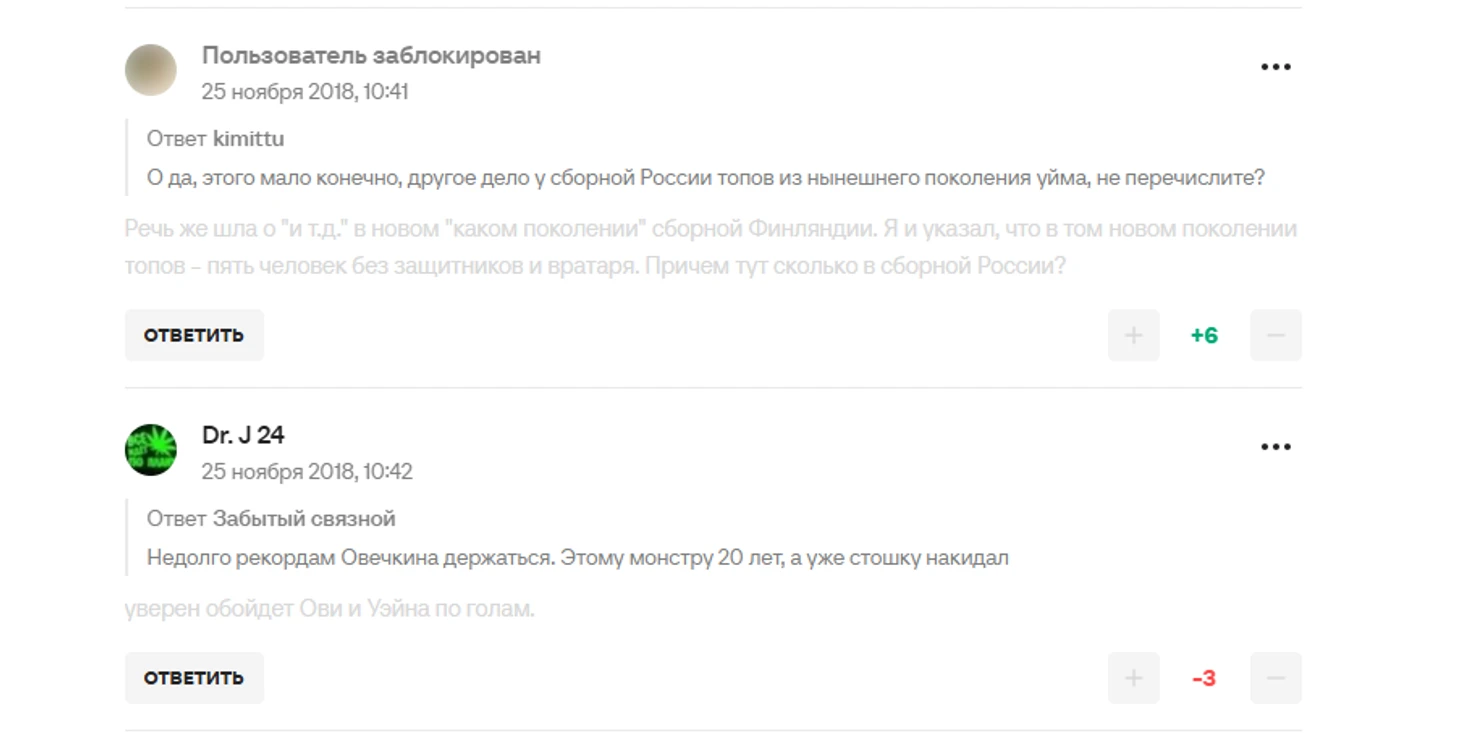 Буквально, когда писал этот текст, наткнулся на очередное одного из пустословов в комментариях к статье «Эти русские набрали 1000 очков в НХЛ»: