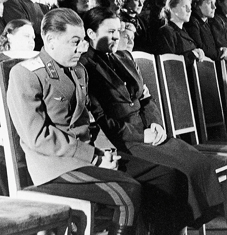 Председатель президиума Верховного Совета СССР Климент Ворошилов в день 75-летия принимает с поздравительными визитами зампреда КНР маршала Чжу Дэ и посла Швеции Рольфа Сульмана.