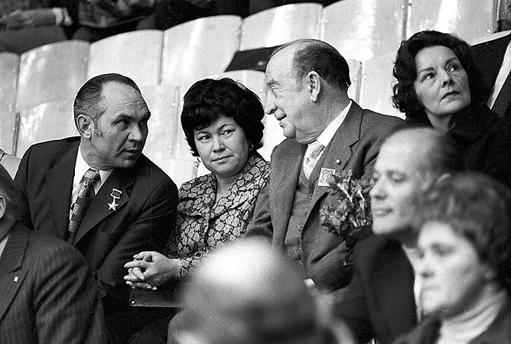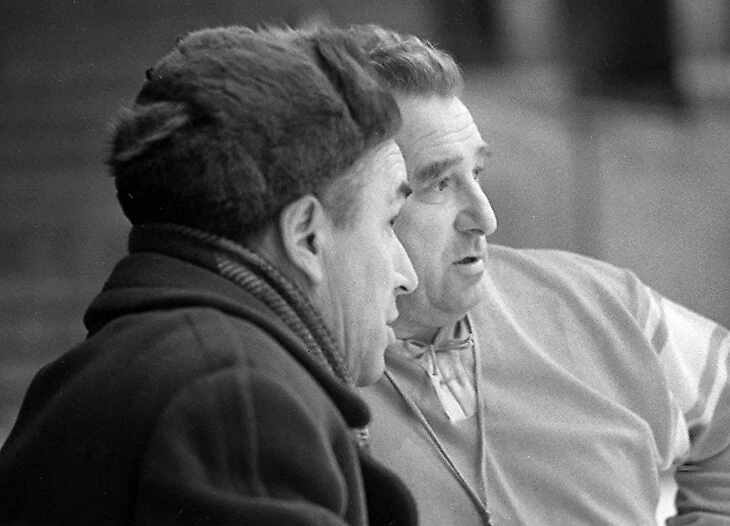 Тем временем к главному тренеру сборной СССР Аркадию Чернышеву заходит заместитель руководителя советской делегации.