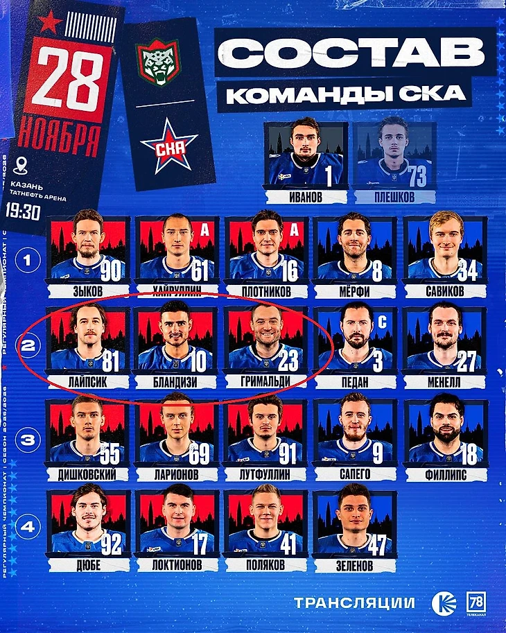 Клуб борется за попадание в плей-офф (8-е место, 32 очка). Позади почти половина регулярки, а проблем у СКА достаточно. Не решен вратарский вопрос (нет первого номера), возникают регулярные провалы в обороне, страдает дисциплина (встреча с «Ак Барсом» подтвердила). Но такое неожиданное трансферное попадание с Лайпсиком – локальный успех, который нельзя игнорировать.