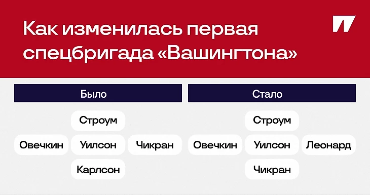 На следующий матч с «Коламбусом» вышла обновленная бригада: Карлсона заменил Леонард. Молодой форвард расположился на правом фланге, а Чикран занял место Джона. И стало лучше. За 6 матчей в этом составе «Вашингтон» реализовал 4 попытки из 13, а еще в нескольких имел хорошие моменты. Потеряв Леонарда, «Кэпиталс» показали в большинстве 0 из 6 за 2 игры со старым добрым ароматом безнадеги.