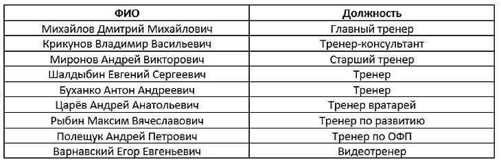 Тренерский штаб