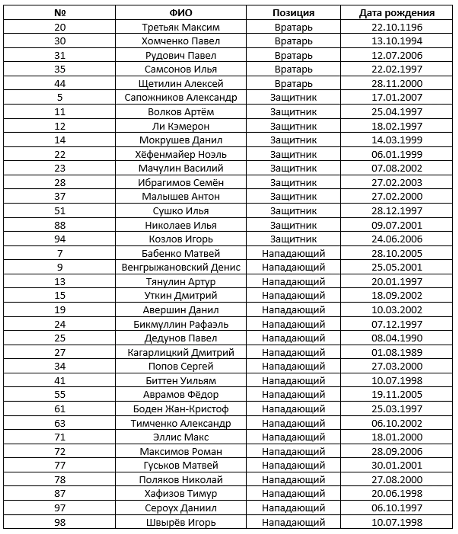 Состав команды