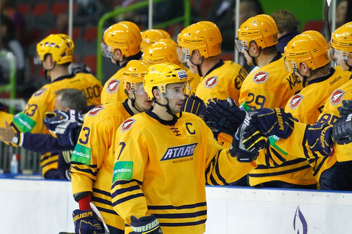 Фото – официальный сайт ХК «Атлант» (Дмитрий Щиголев, Каспар Волонтс(Рига))