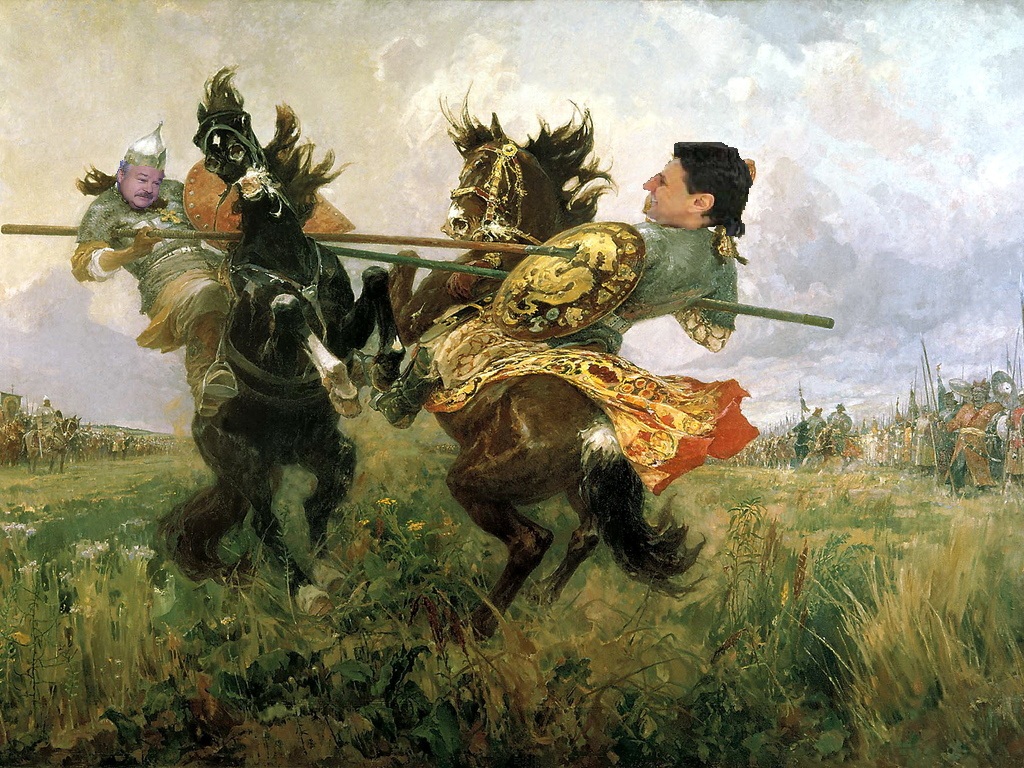 Вот тут уже шансы героев равны. Вспоминая былинный эпос, в сражении погибли оба богатыря. Используя заезженную шутку, хотелось, чтобы на месте героев оказались Александр Кержаков и Серхио Рамос. Тогда бы точно все остались живы.