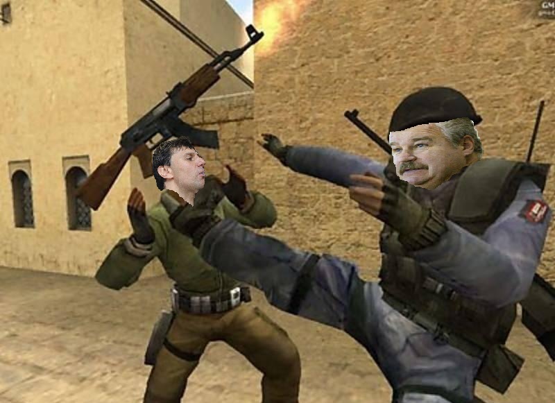 Ну тут хедлайнер очевидно одерживает победу, в нетипичном для CS стиле с ноги выбивая автомат из рук противника. Правда, никто эту викторию не назовет серьезной и легитимной, но кого бы это волновало. Позднее можно припомнить это поражение проигравшей стороне.