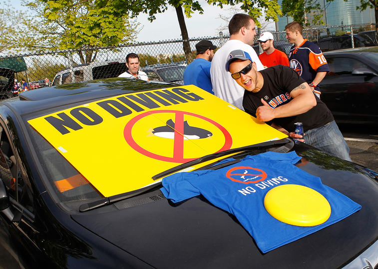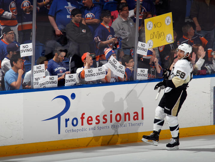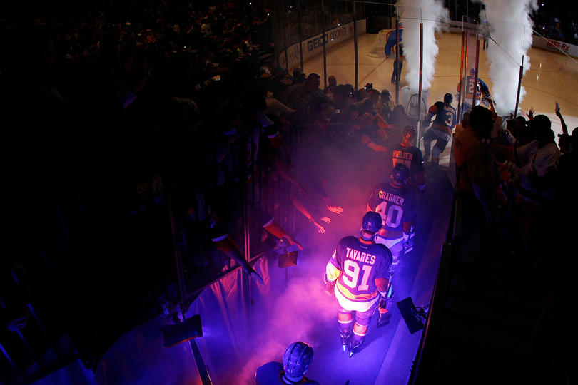 Серия на два матча перехала в Нью-Йорк. Болельщики островитян, заждавшиеся матчей на вылет, готовились к встрече с пингвинами наравне с игроками.