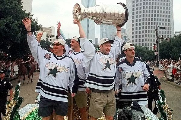 Даллас наоборот был менее частым гостем кубковых баталий - 8 раз за 14 лет. По количеству чемпионских вымпелов отстали совсем на немного - 5. Ну Президентский кубок 1999 "звёзд" в наличии.