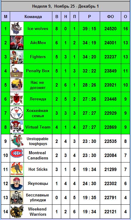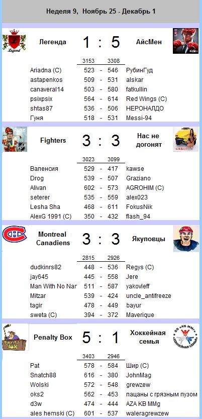 Итоги девятого тура Team Head to Head NHL 2013/2014