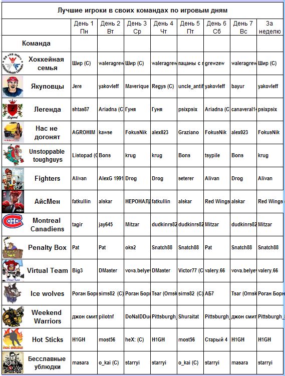Самые результативные игроки (становившиеся лучшими в своей команде по итогам недели):