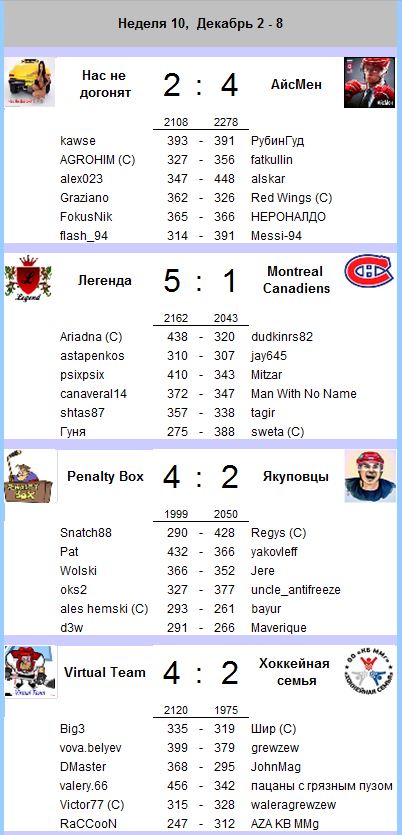 Превью десятого тура Team Head to Head NHL сезон 2013/14