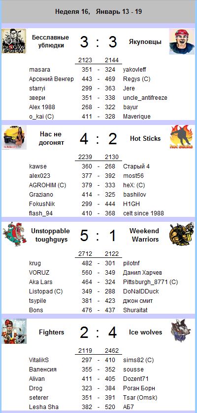 Ссылки на лиги команд, картинки кликабельны