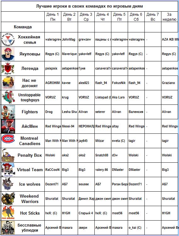 Лучшая команда дня