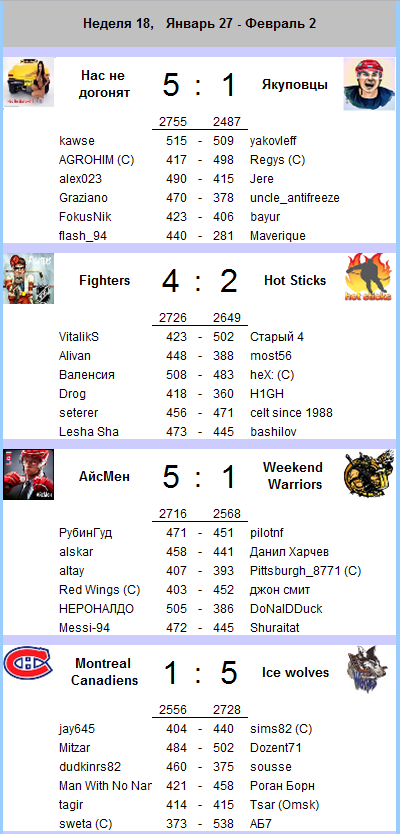 Превью 18-го тура Team Head to Head NHL сезон 2013/14
