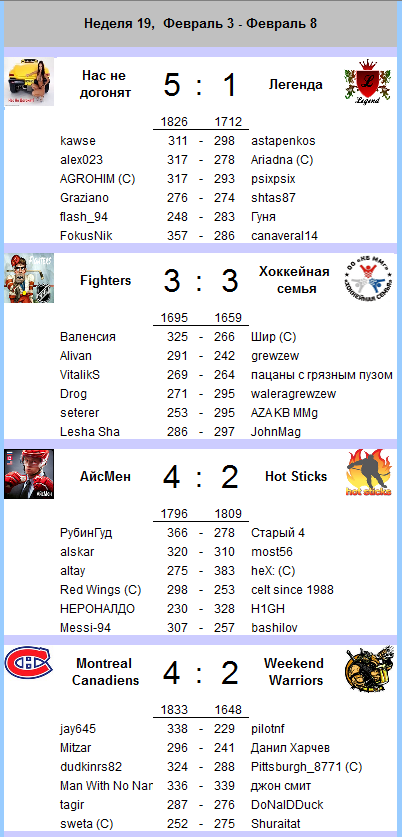 Превью 19-го тура Team Head to Head NHL сезон 2013/14