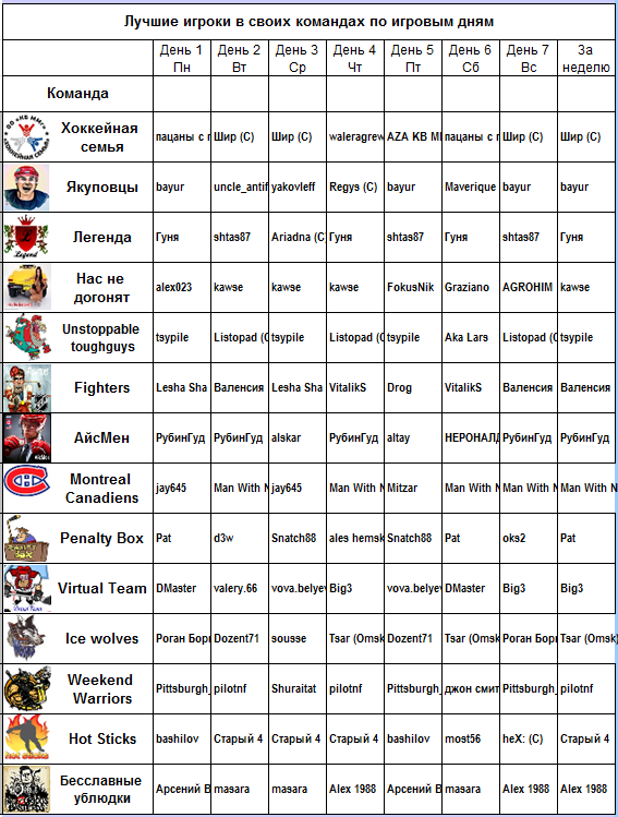 Самые результативные игроки (становившиеся лучшими в своей команде по итогам недели):