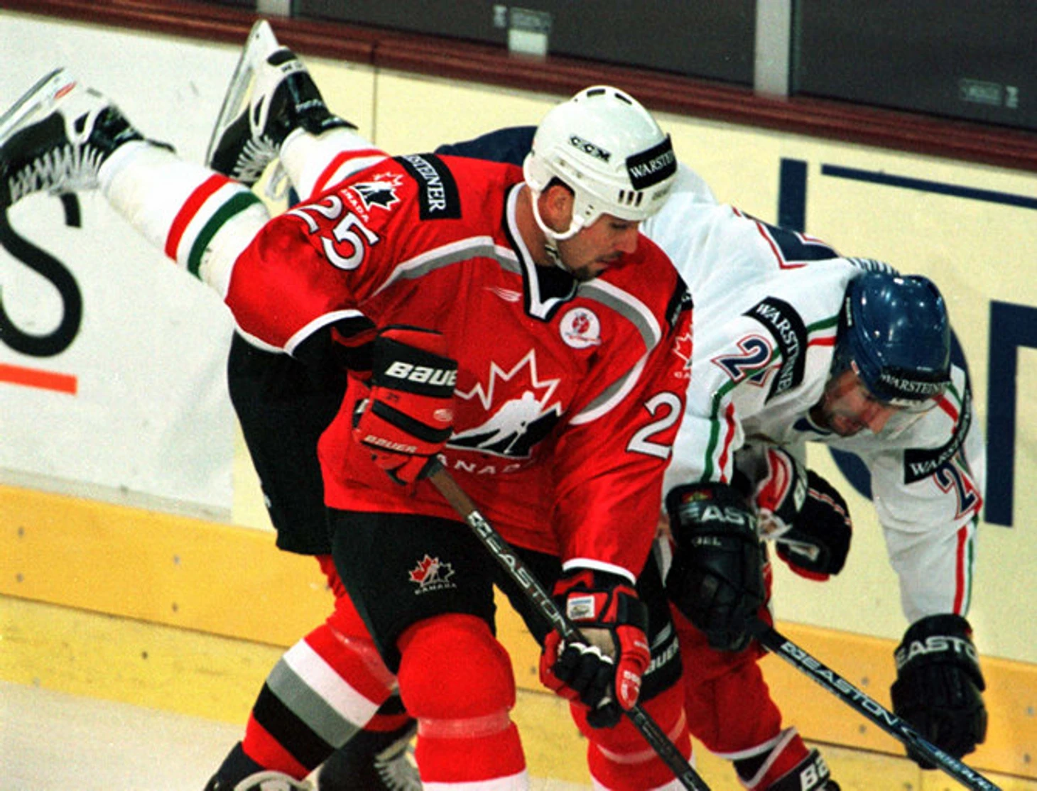 На нем шикарный по именам состав (Пронгер, Блэйк, Линден, Бертуцци, Дазе и др.) постигла трагедия – в четвертьфинальной группе канадцы досадно упустили победу над финнами, пропустив две шайбы за две последние минуты матча, а затем были вдрызг разбиты будущими чемпионами – шведами (1:7) – и в полуфинал не попали.