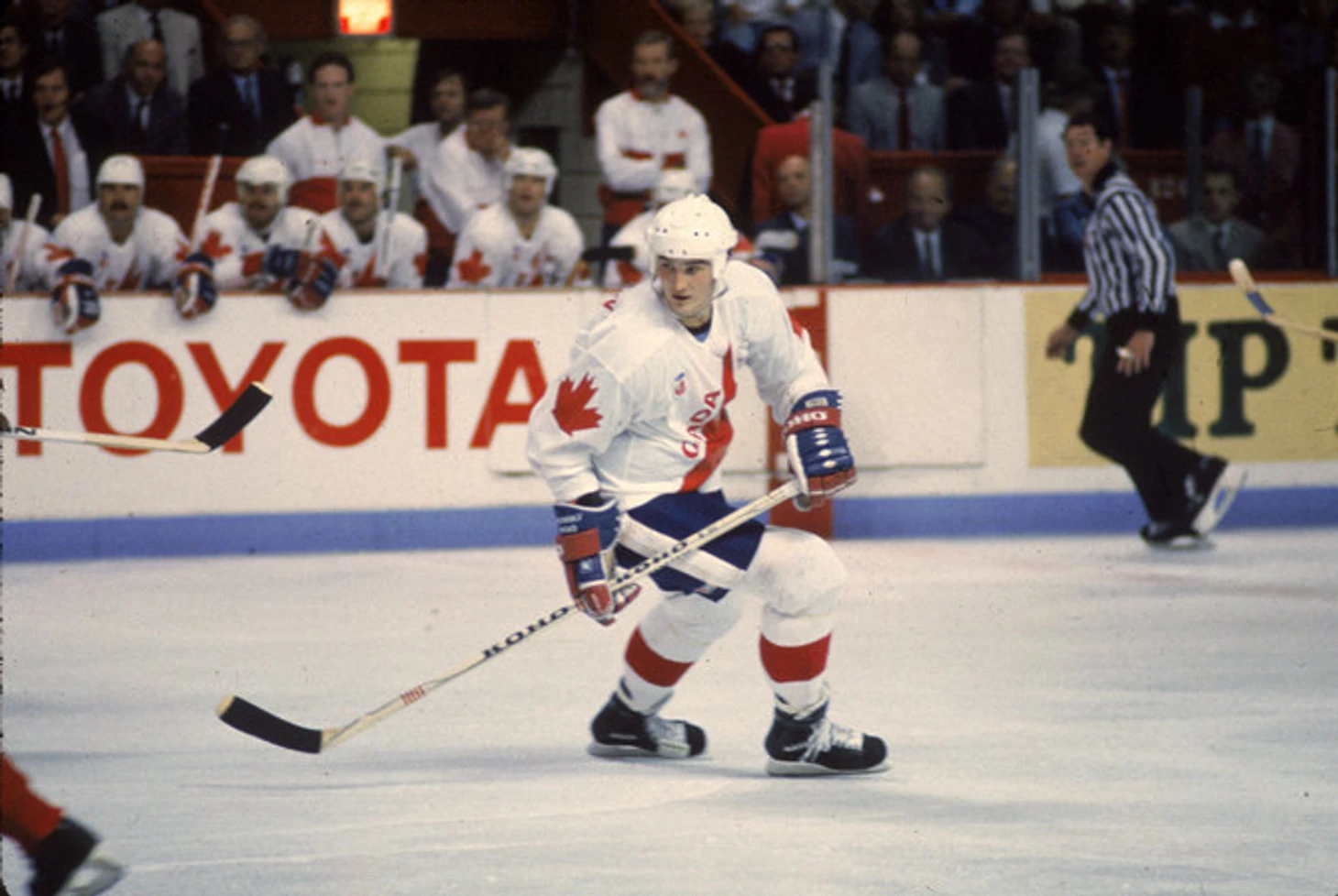 Отчасти это было связано с тем, что то мировое первенство началось на неделю раньше обычного и канадцы могли рассчитывать только на тех игроков из НХЛ, кто в плей-офф вместе со своими клубами не попал. Вот и получилось, что состав у канадцев вышел едва ли не слабейшим после их возвращения на ЧМ.