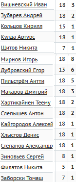 Как делалось? Пересмотрел все голы команды на сайте КХЛ, точками примерно отметил каждого. Отмечал сначала по возрастающей после двух раундов, затем просто дополнял. Напомним снайперские достижения: