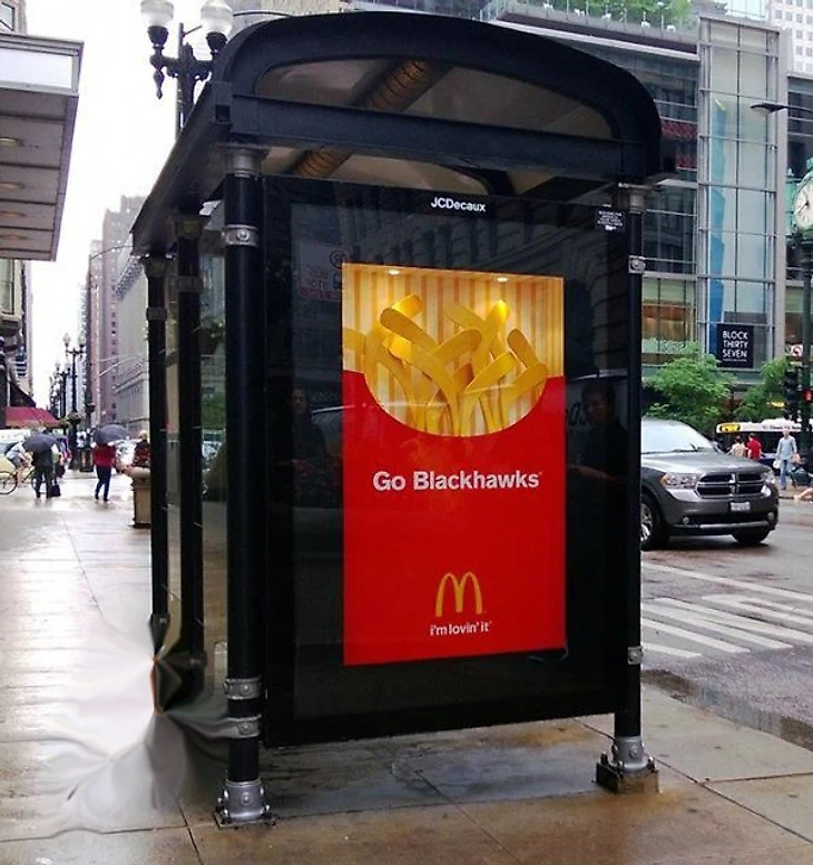у нас в Питере хоккейные автобусы)) ну как хоккейные...обклеены очень красиво и вообще хорошо заметно, что хоккейных постеров/реклам и т.д. у нас больше чем футбольных.
