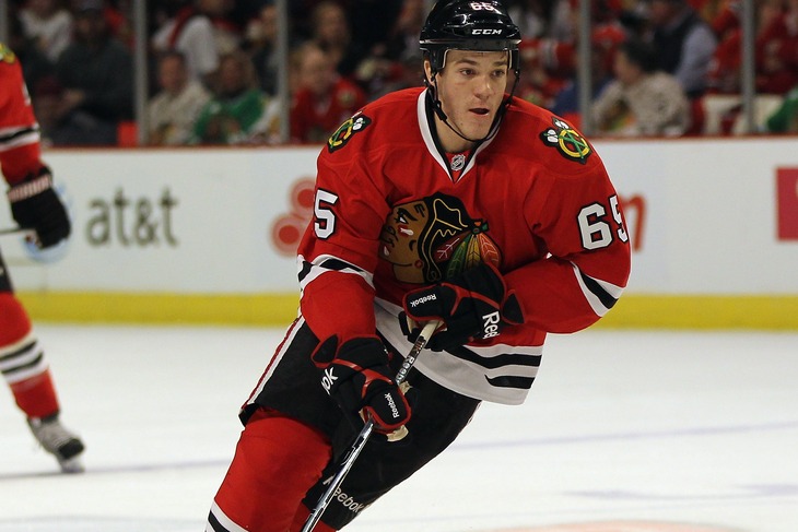 Играет в Чикаго, который его и задрафтовал в 2011, под 135 пиком. В 2013 выиграл кубок Стэнли. В плэй-офф тогда форвард набрал 9 очков в 23 играх и стал автором двух победных шайб (с Детройтом и Бостоном). Его фото с рассечением на правой скуле стало одним из символов плэй-офф 2013, в последствии швы "ушли" на акуционе за 6,5 тыс $.