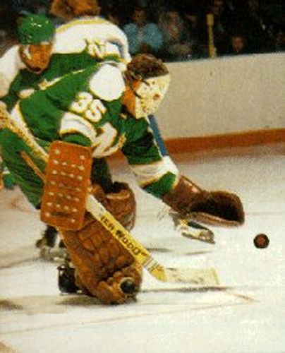 Жиль ГИЛБЕРТ. Задрафтовал был "Норт Старз" в 1969 году, в 3 раунде, под общим 25 номером. Роль Гилберта за 4 сезона была не самая заметная. Провел всего 44 матча, одержал 16 побед, 2 шатаута. В 1973-74, он был продан в "Брюинз", где и прошли лучшие годы.