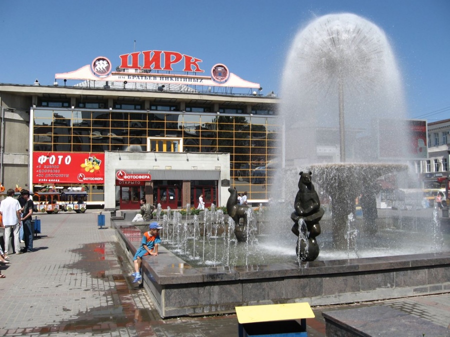 В 1876 году на торговой Митрофаньевской площади Саратова было построено круглое деревянное здание с парусиновой крышей, вывеска на нём гласила «Первый Русский цирк братьев Никитиных». Здесь впервые было дано представление, в котором участвовали преимущественно русские цирковые артисты. Именно в нашем городе русский цирк по-настоящему встал на ноги, получил первое и высокое признание. Здание, выстроенное братьями Никитиными, простояло до 1928 года. Сейчас на этом месте расположен кинотеатр «Победа».