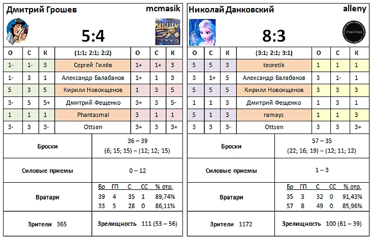 Экспресс-комментарий к матчу: в этом противостоянии я увидел подавляющее преимущество Данковского над прекрасной девушкой alleny. Чего уж душой кривить, я болел за Алену, но не получилось, хотя будь соперник другим. У Аленки были бы гораздо большие шансы на продолжение борьбы.