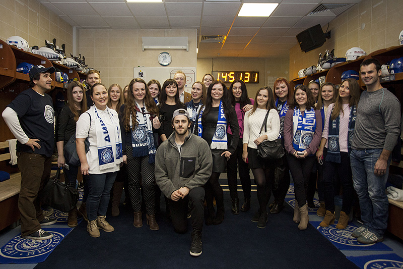 В субботу состоялась очередная встреча проекта «Хоккей на шпильках», в рамках которой девушки смогли поближе познакомится с правилами игры, своими глазами увидеть раздевалку «зубров» и даже подержать в своих руках настоящие игровые клюшки. А после этого у участниц была возможность пообщаться с игроками, что называется, лицом к лицу и услышать ответы из первых уст. Пожалуй, каждая болельщица мечтает об этом. На этот раз повезло 17 девушкам, может в следующий раз повезет и вам?