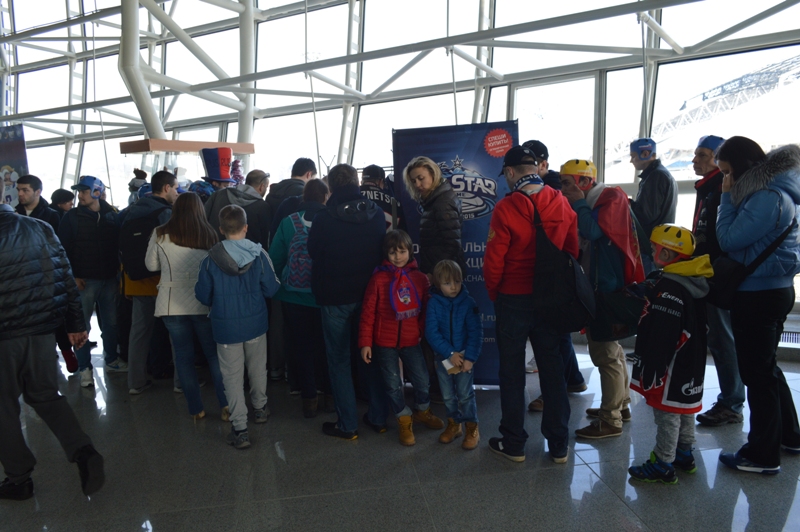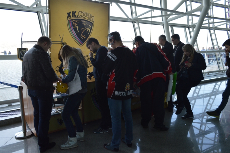 Проявив недюжинную смекалку и находчивость, удалось попасть на арену с самыми первыми посетителями, когда в холле было еще пустынно. Решив сперва осмотреть сооружение, а после перейти к изучению ассортимента в точках продажи сувенирной продукции, мы и глазом моргнуть не успели, как у всех прилавков образовались очереди. Все хотели забрать с собой кусочек этого праздника. Пустынно было лишь у точки продажи атрибутики местной команды.