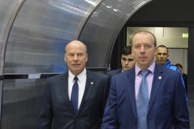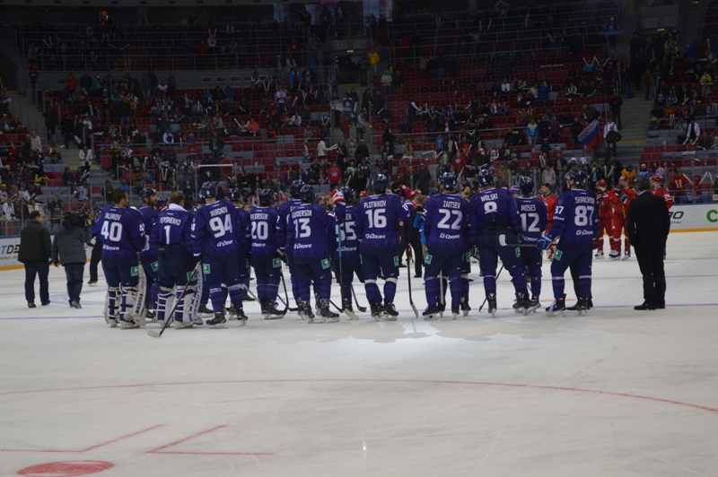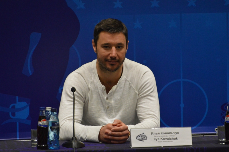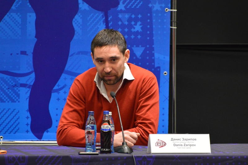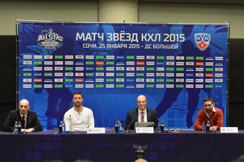 Бросив беглый взгляд на толпы наводняющие арену, мы отправились на пресс-конференцию с участием президента КХЛ Дмитрия Чернышенко и капитанов сборных Запада и Востока.